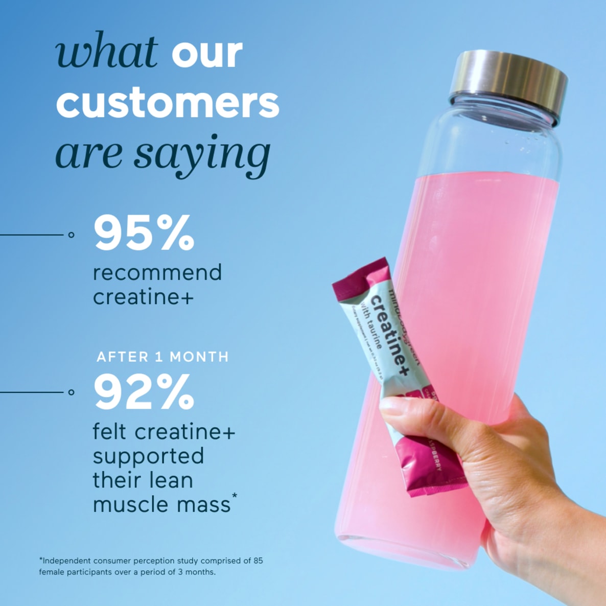 I used to think creatine+ was for “boys” only, but after using creatine+ along with my whey protein and exercise, I’m feeling and seeing the benefits…stronger, sharper, etc.*